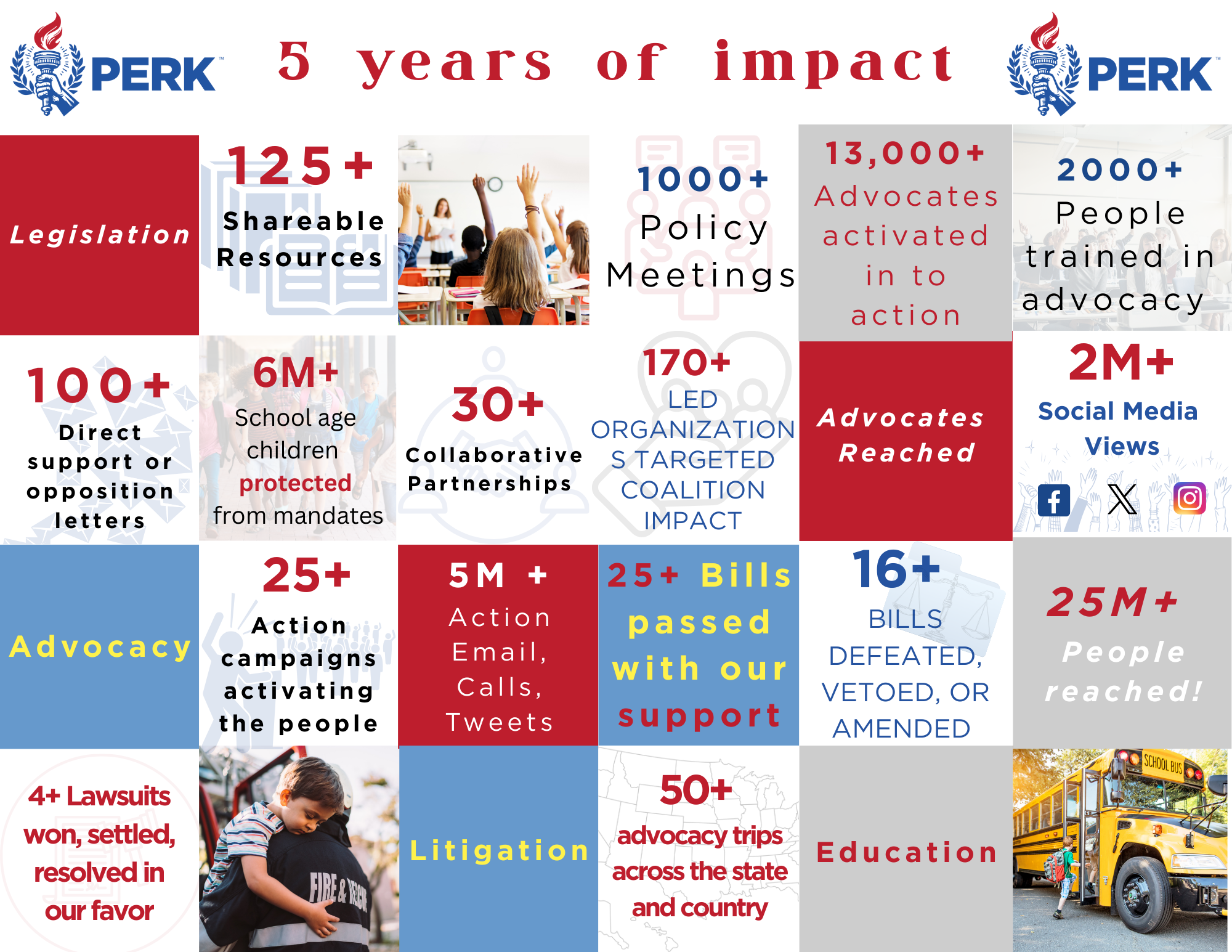PERK is currently litigating several lawsuits to defend medical freedom, parental sovereignty, and educational rights.