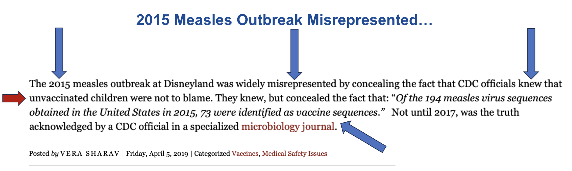 The misclassification of the outbreak on unvaccinated individuals serves a purpose, which is to introduce stricter vaccination laws. To introduce such laws, the blame must be placed on the unvaccinated individuals.