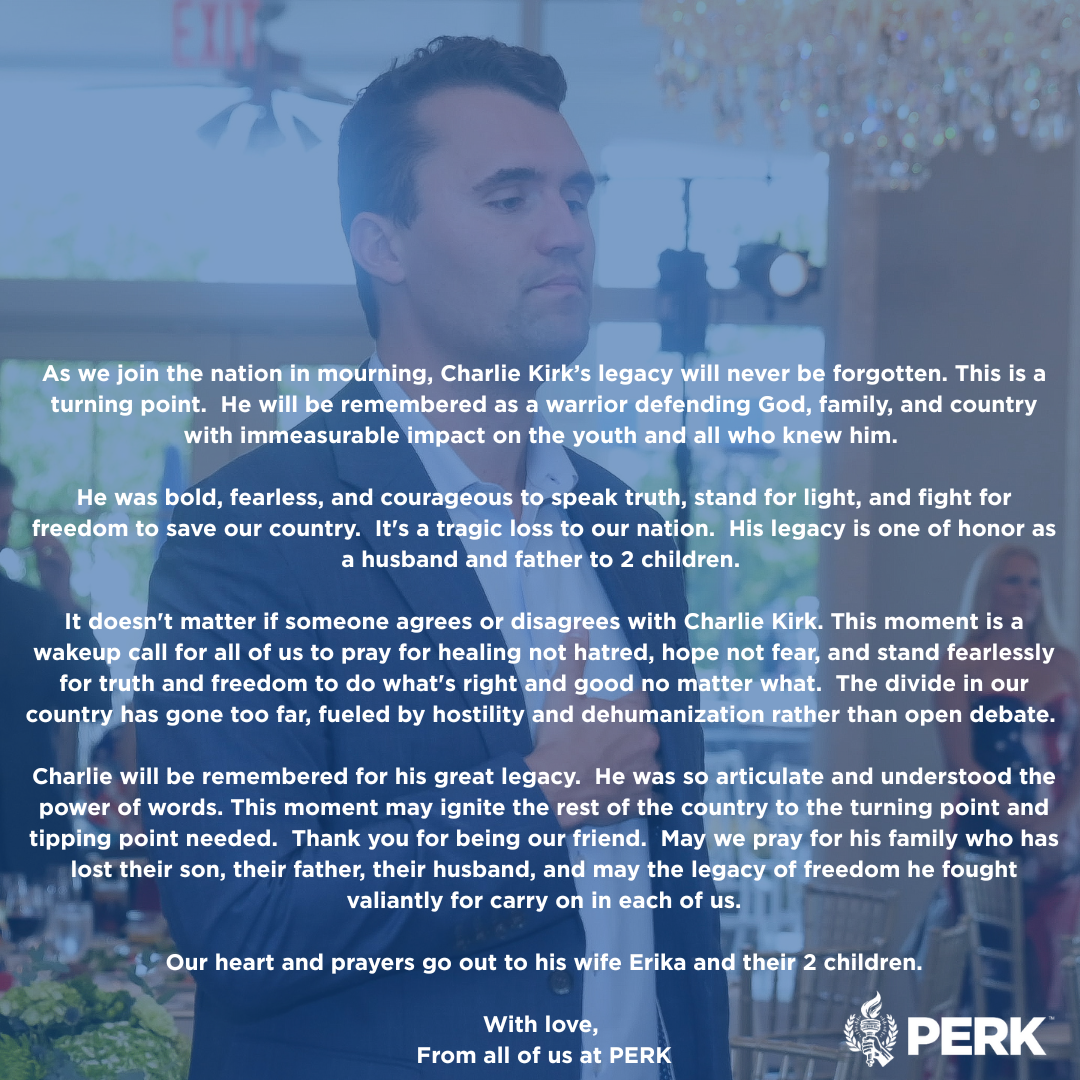 As we grieve the loss of a great leader, patriot, father, and husband, may his political assassination mark the contrast of what darkness and evil does while Charlie was peacefully debating ideas. He was a force of nature.