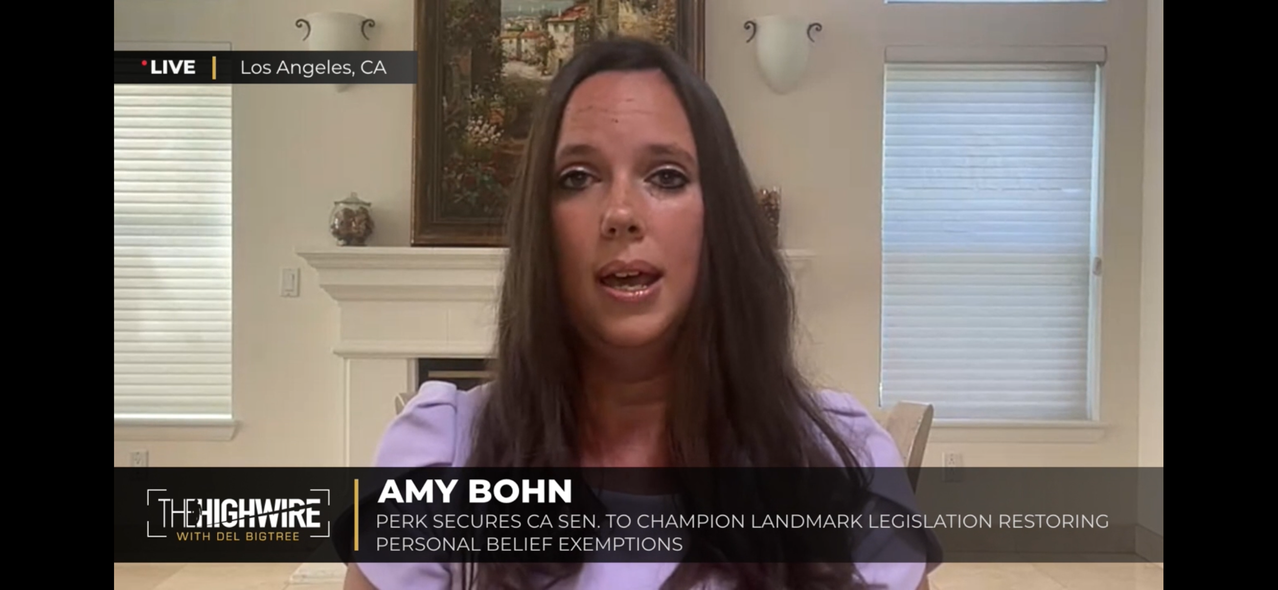 Lastly, Amy Bohn shares exciting news as PERK secures senator to champion landmark legislation restoring personal belief exemptions and medical privacy for all Californians.