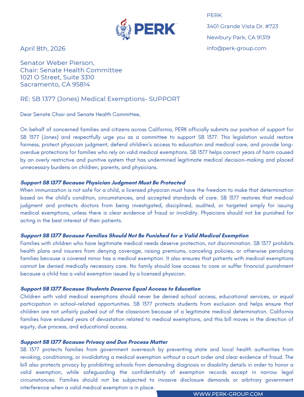 We need every supporter and every organization to submit an official letter of support for SB 1377, the Medical Exemption Protection Bill, to the California Senate Health Committee through the official Advocacy Portal as soon as possible. HERE.